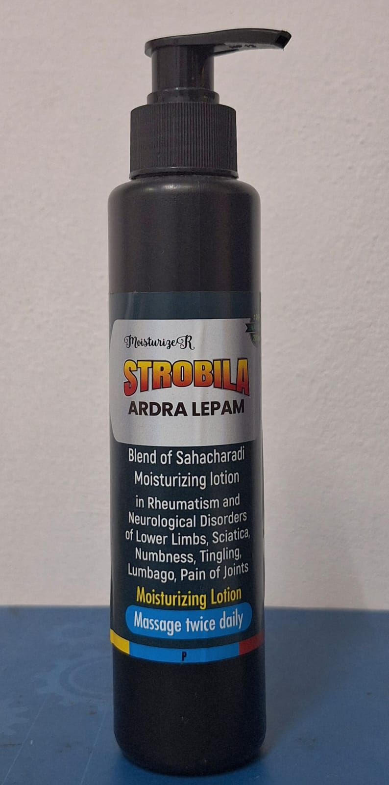 MASTER OF LOWER LIMBS-Strobila Ardra Lepam is a traditional Ayurvedic moisturizing formulation designed to support relief from rheumatism and neurological disorders affecting the lower limbs. It helps address symptoms such as sciatica, numbness, tingling, lumbago, and joint pain. This potent blend combines herbs like Common Yellow Nail Dye Plant, Wild Asparagus, Dashamoola, Tribulus, and others, enriched with natural ingredients including cow's milk and aromatic botanicals. Together, these components work synergistically to soothe inflammation, promote circulation, and enhance mobility. Ideal for those seeking natural support for lower limb discomfort and joint health.
